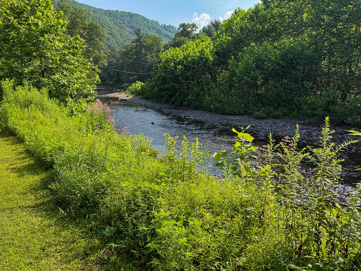 Our canvas tent includes a queen bed and side tables, electric outlets inside and outside, a fire ring, and picnic table. Enjoy your morning coffee on the deck that faces the Bennett Branch Sinnemahoning creek.