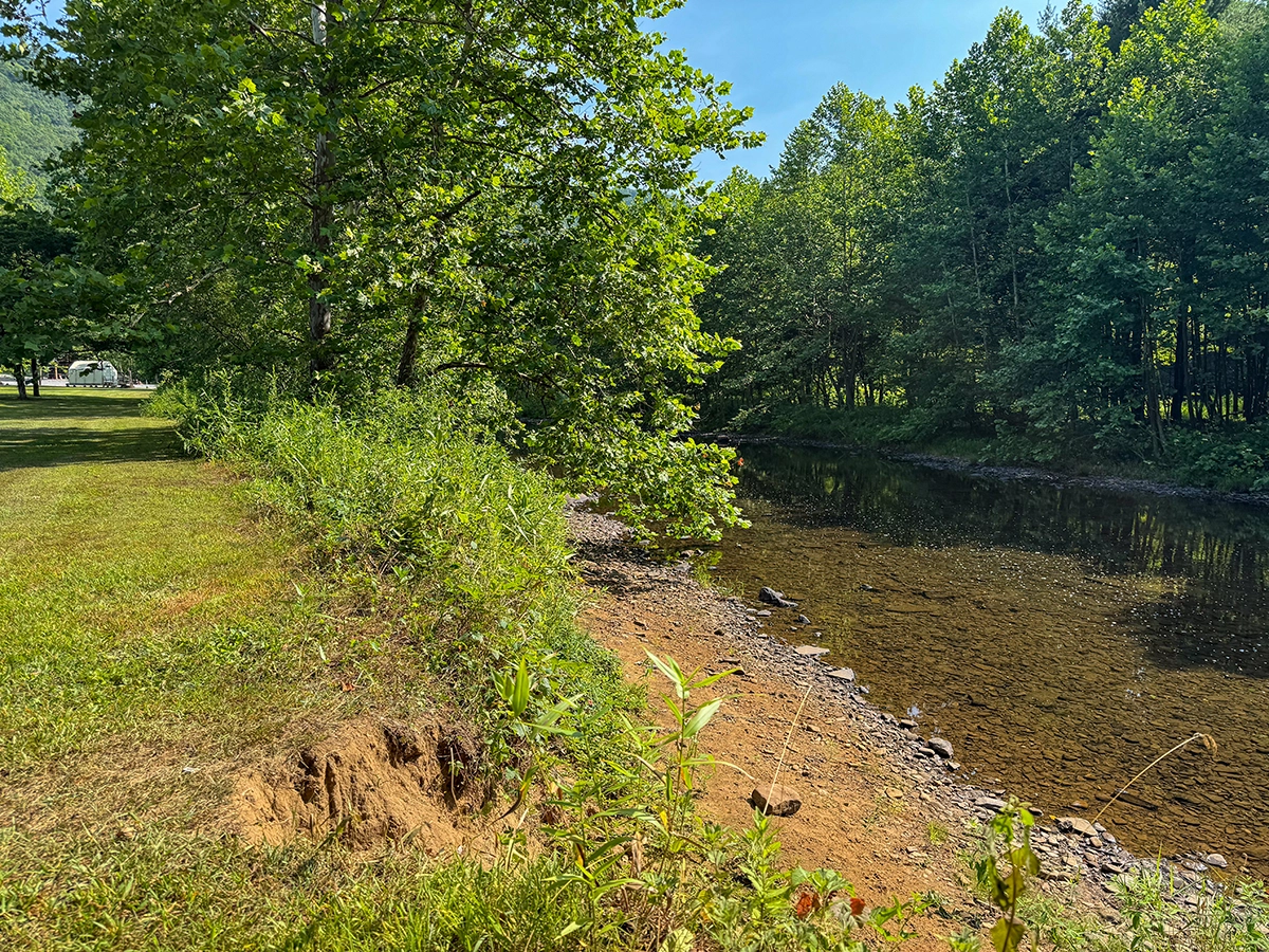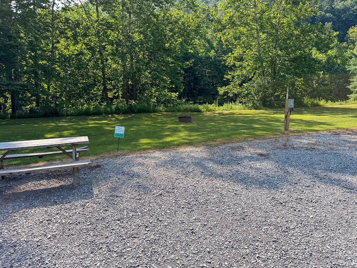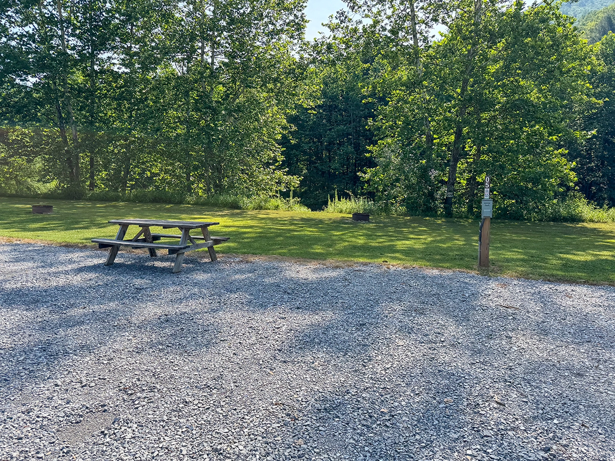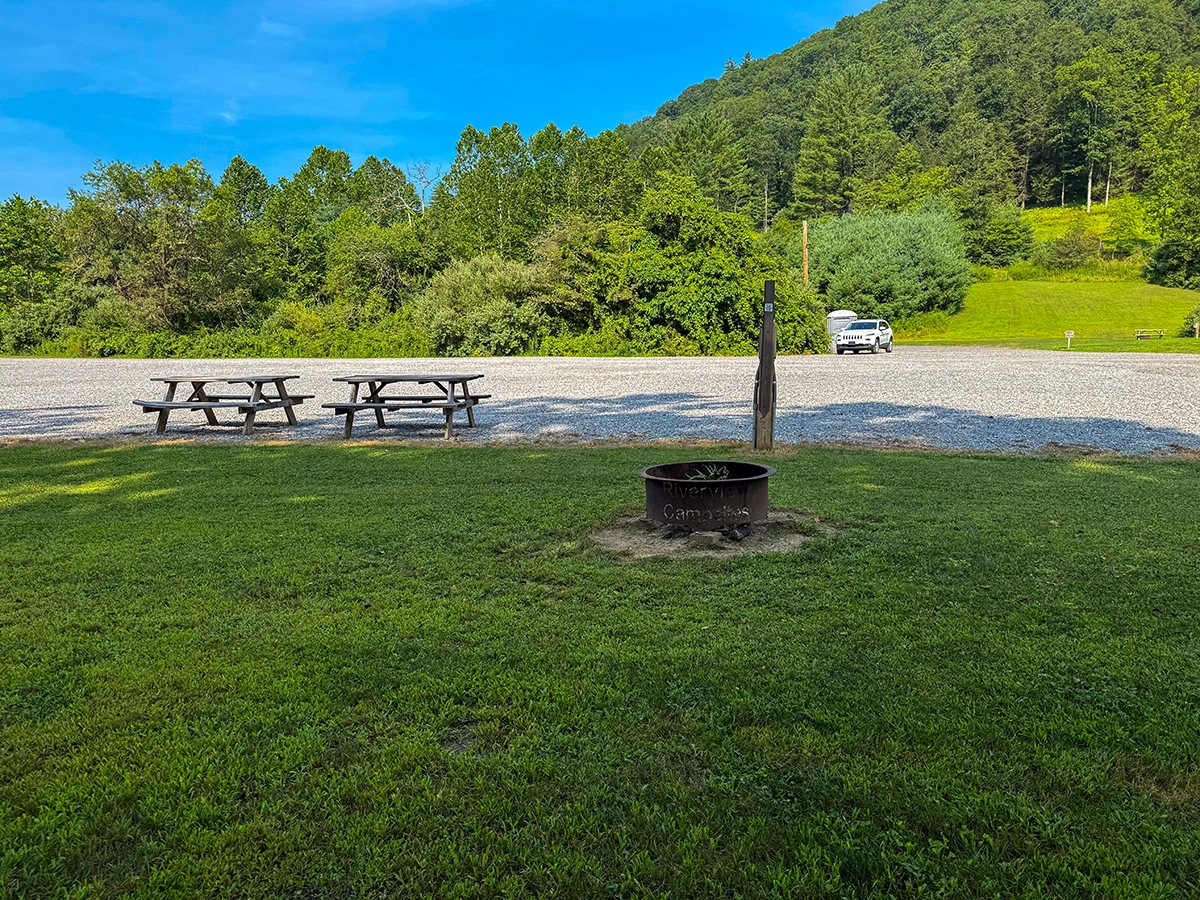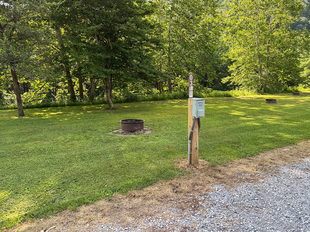 Privacy Level: Medium – site is near the front entrance and has neighbors, but more privacy can be achieved by parking parallel to the river