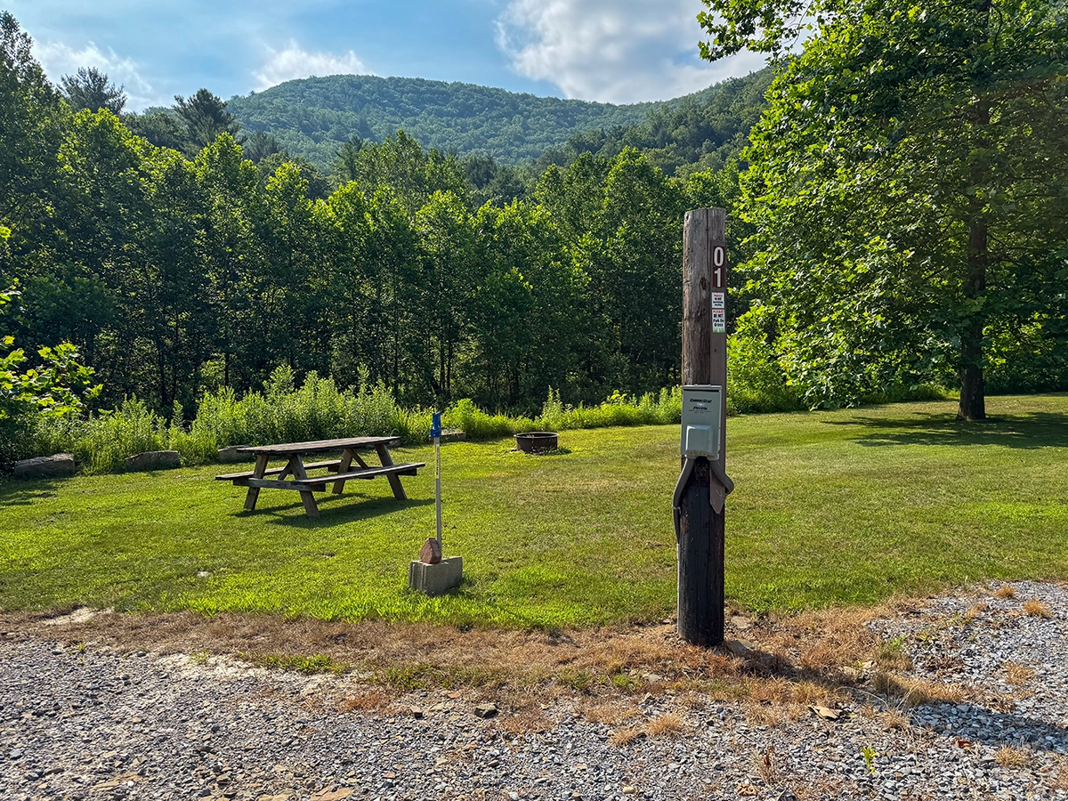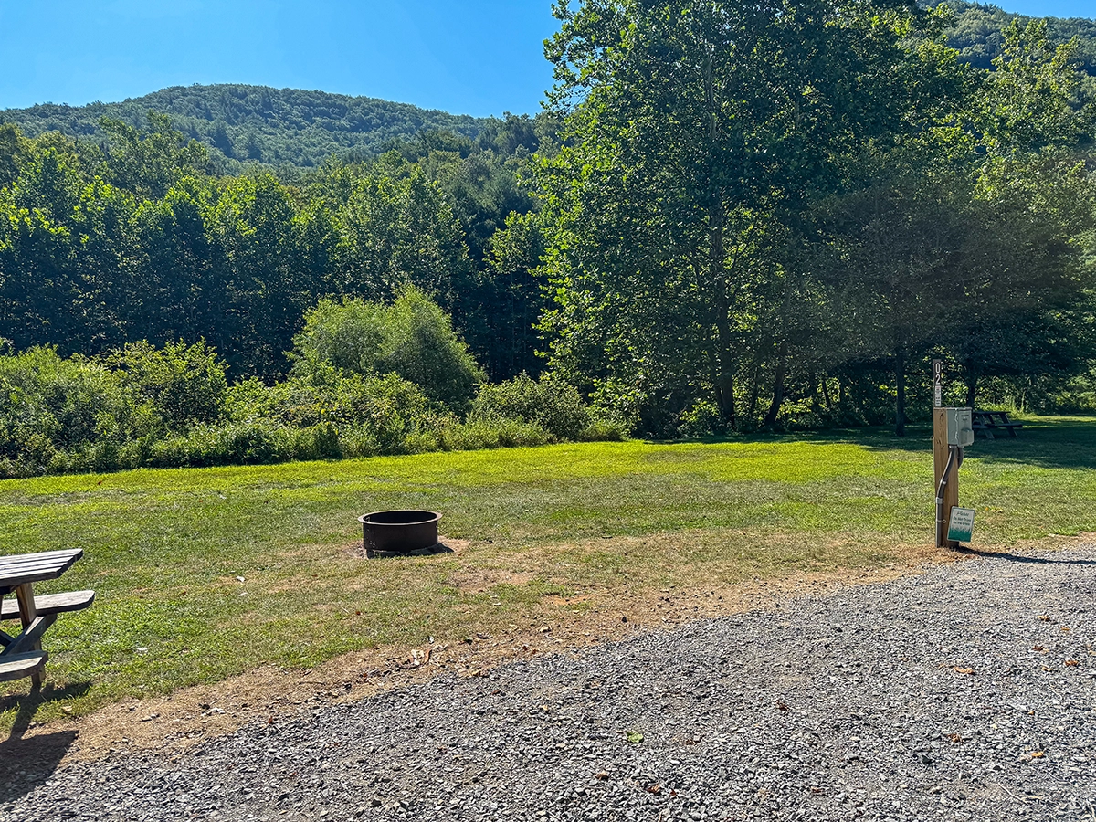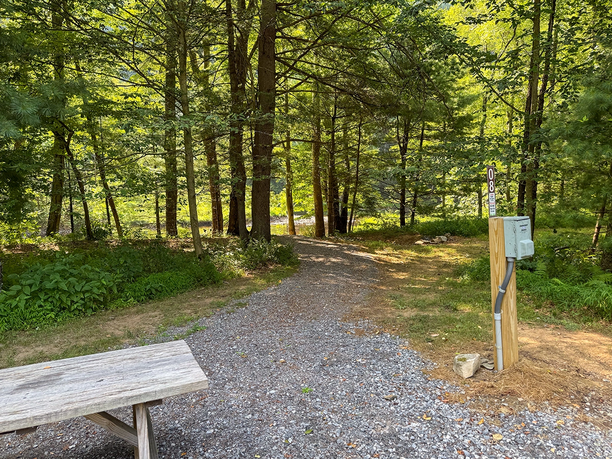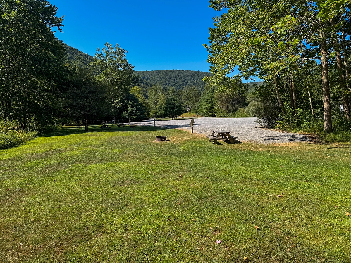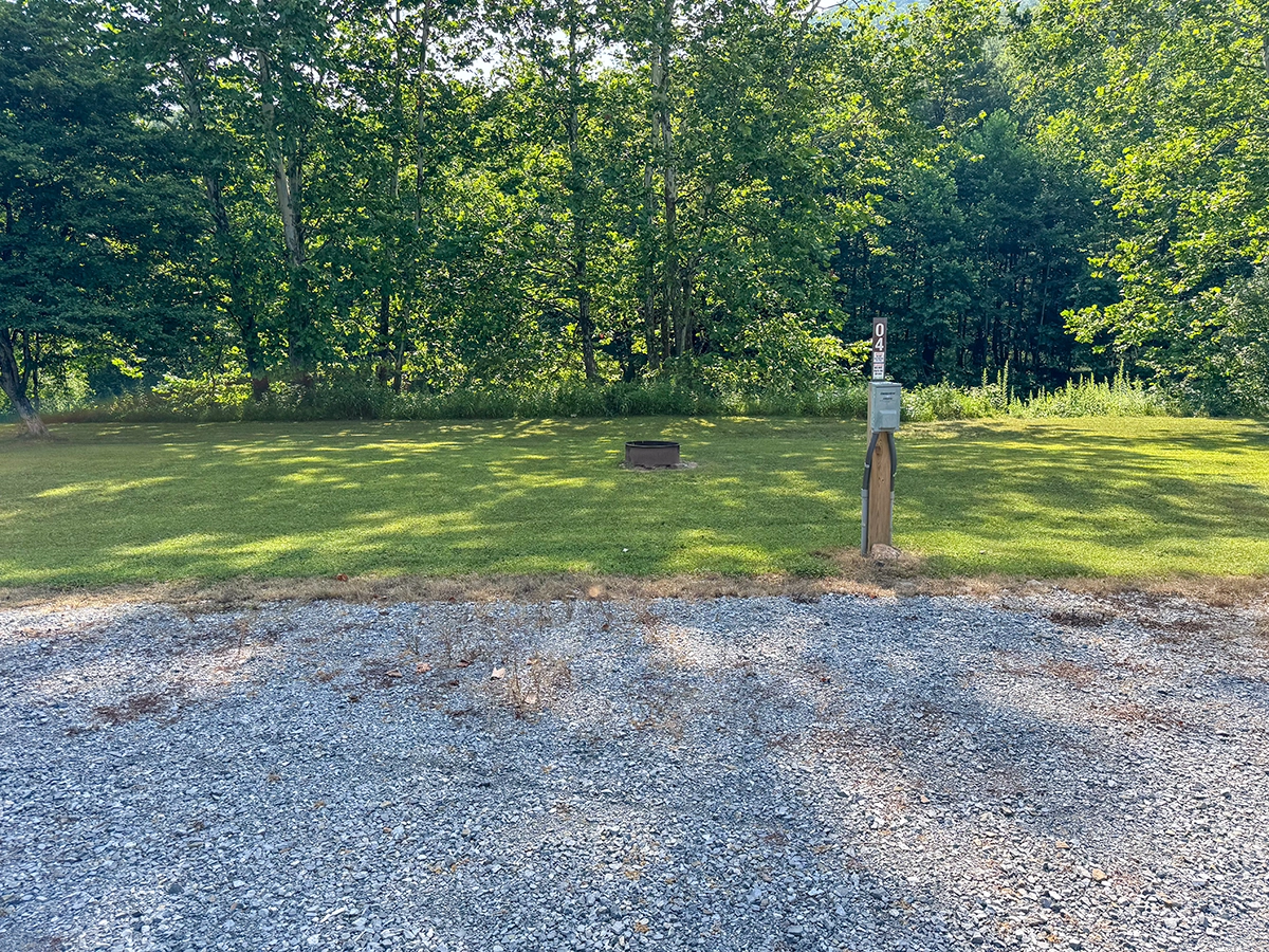 Privacy Level: Medium – site is near the front entrance and has neighbors, but more privacy can be achieved by parking parallel to the river