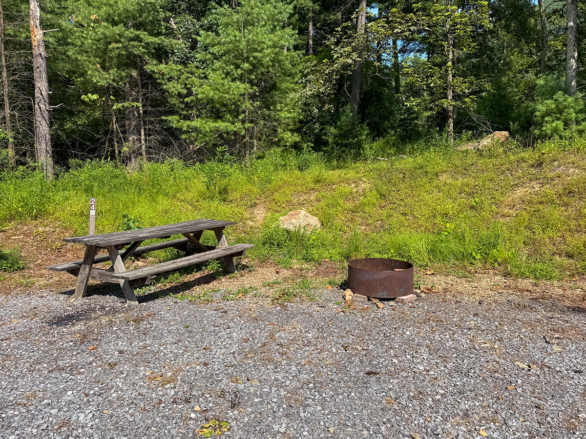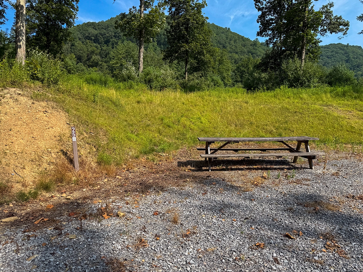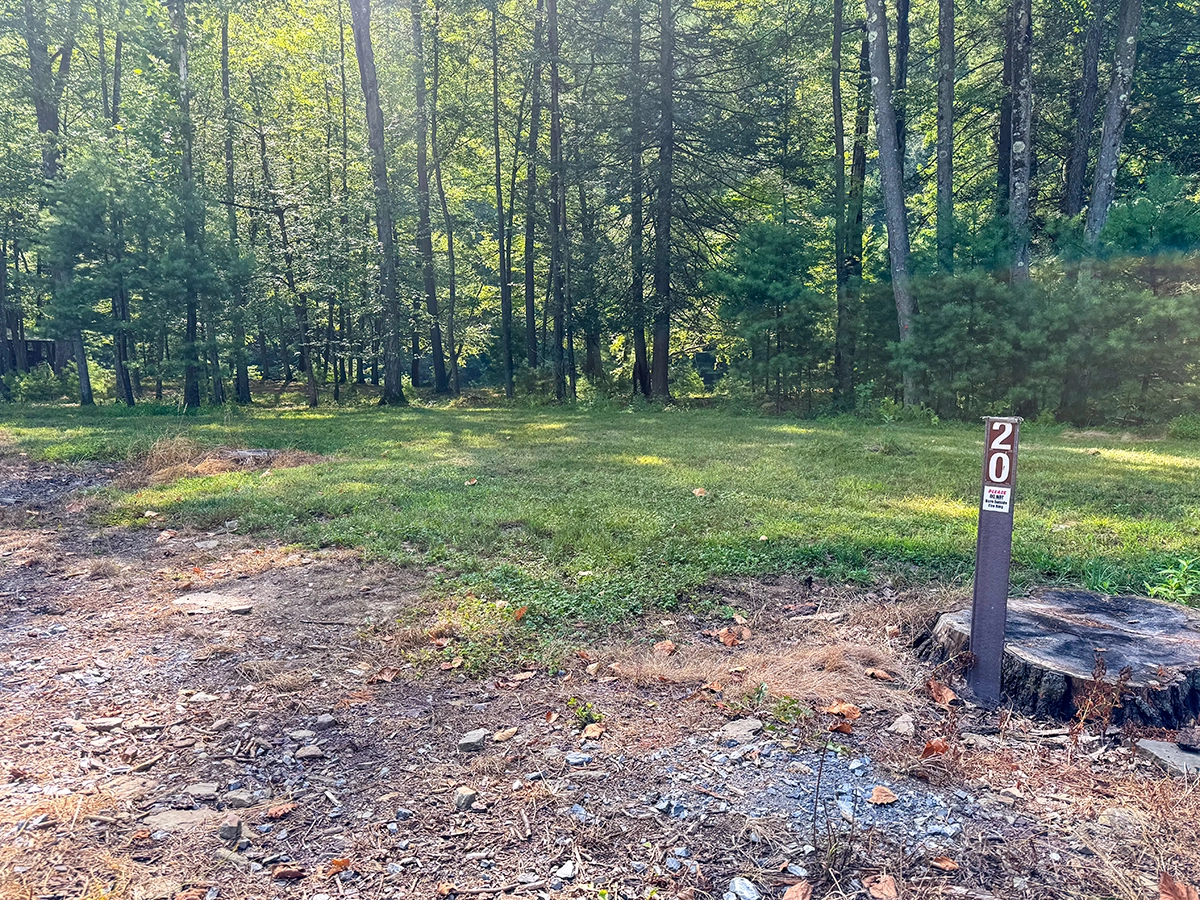 Privacy Level: HIGH – Sites 20-26 are in the back cul-de-sac farthest away from the main entrance. Some foot traffic, golf carts, or bicycles may access the golf cart/walking path between sites 23 and 24 that leads to the shower house in the Mountain View area of the campground.